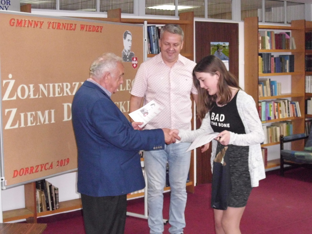 Dnia 22 maja br. w Gminnej Bibliotece Publicznej w Dobrzycy uczniowie szkół podstawowych z Dobrzycy, Galewa, Karmina i Lutyni rywalizowali w XVII edycji gminnego turnieju wiedzy z cyklu „Ziemia Dobrzycka Moja Mała Ojczyzna”. Przygotowany tradycyjnie już we współpracy z Towarzystwem Miłośników Ziemi Dobrzyckiej konkurs przebiegał pod hasłem „Żołnierze Wyklęci Ziemi Dobrzyckiej”.