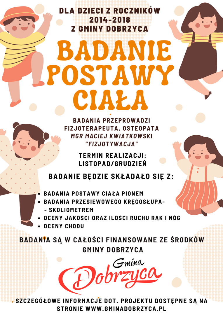 Projekt pn. „BADANIE POSTAWY CIAŁA” dla dzieci z roczników 2014-2018 uczęszczających do szkoły i szkół stowarzyszeniowych Gminy Dobrzyca