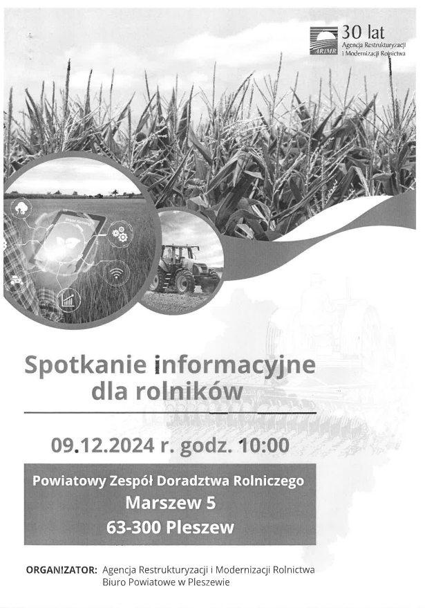 Spotkanie informacyjne dla rolników 09.12.2024 r. godz. 10:00
