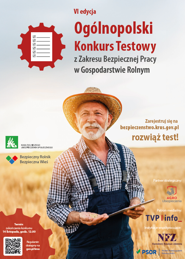Informacja dotycząca VI edycji Ogólnopolskiego Konkursu Testowego z Zakresu Bezpiecznej Pracy w Gospodarstwie Rolnym Dobrostan Rolnika