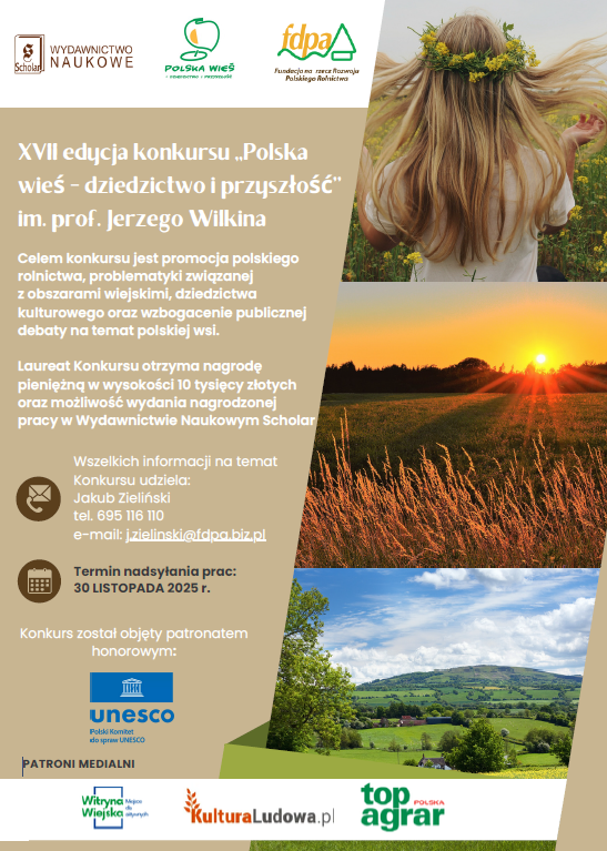 XVII edycja konkursu ,,Polska wieś - dziedzictwo i przyszłość’’ im. prof. Jerzego Wilkina