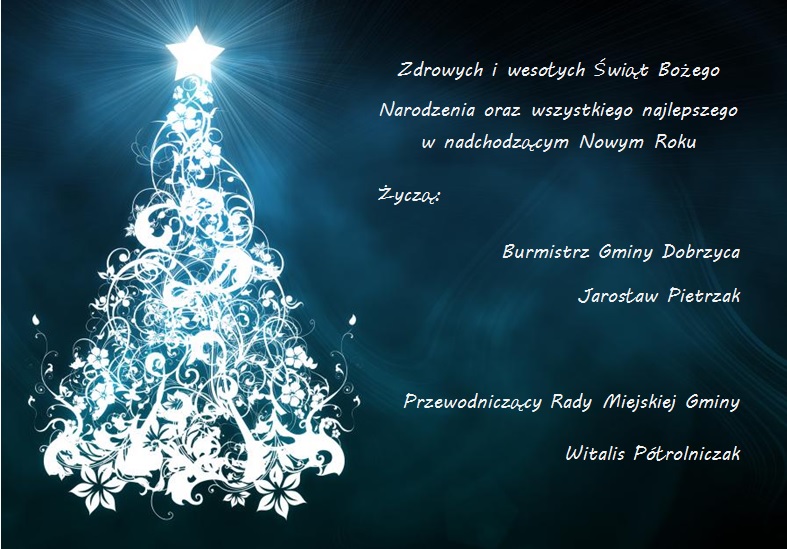 Życzenia świąteczne. Opublikowano: 13 grudnia 2015 21:43 Kategoria: Aktualności WydrukujDo góry Wyświetleń: 1619 Zobacz również20.12.2015 Dobrzyckie Kolędowanie - Dobrzyca 2015. 16.12.2015 PRZEBUDOWA DRÓG GMINNYCH Z UDZIAŁEM ŚRODKÓW Z... 15.12.2015 24.12.2015 r. Urząd Miejski Gminy Dobrzyca... 13.12.2015 Życzenia świąteczne. 13.12.2015 Fotorelacja z Gminnego Spotkania Opłatkowego... 11.12.2015 Nabór uczestników do Dziennego Domu...