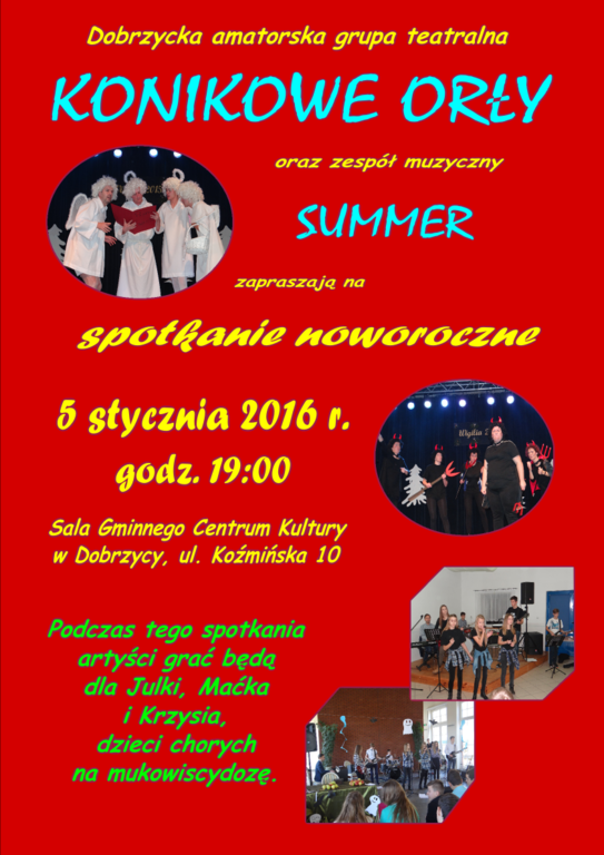 Zaproszenie na występ amatorskiej grupy teatralnej "KONIKOWE ORŁY" oraz koncert zespołu muzycznego "SUUMER".