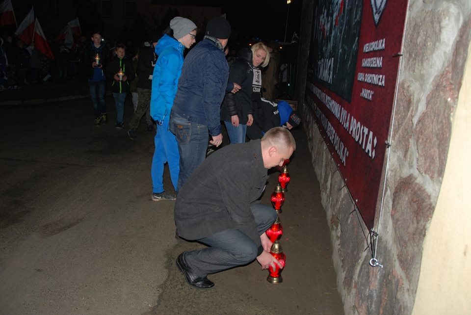 Wystrzałami rac i salwami z broni Drużyna Tradycji imieniem 70 Pułku Piechoty z Pleszewa uczciła bohaterów tamtych dni . Pod ścianą upamiętniającą „ Żołnierzy Wyklętych” zapalono znicze.