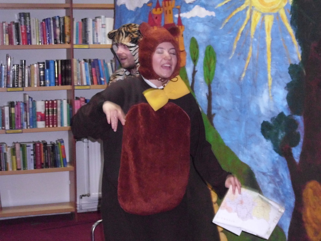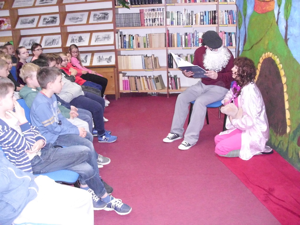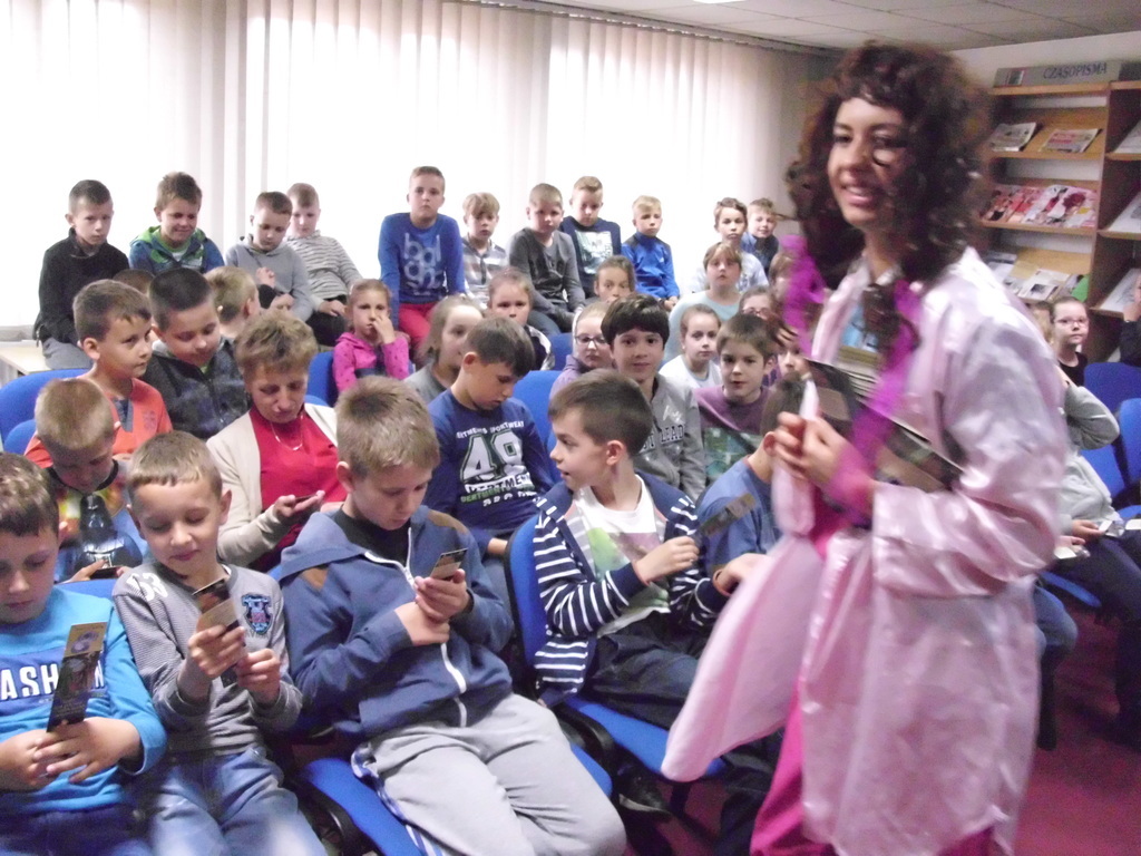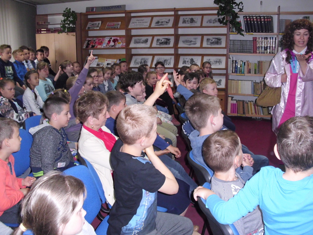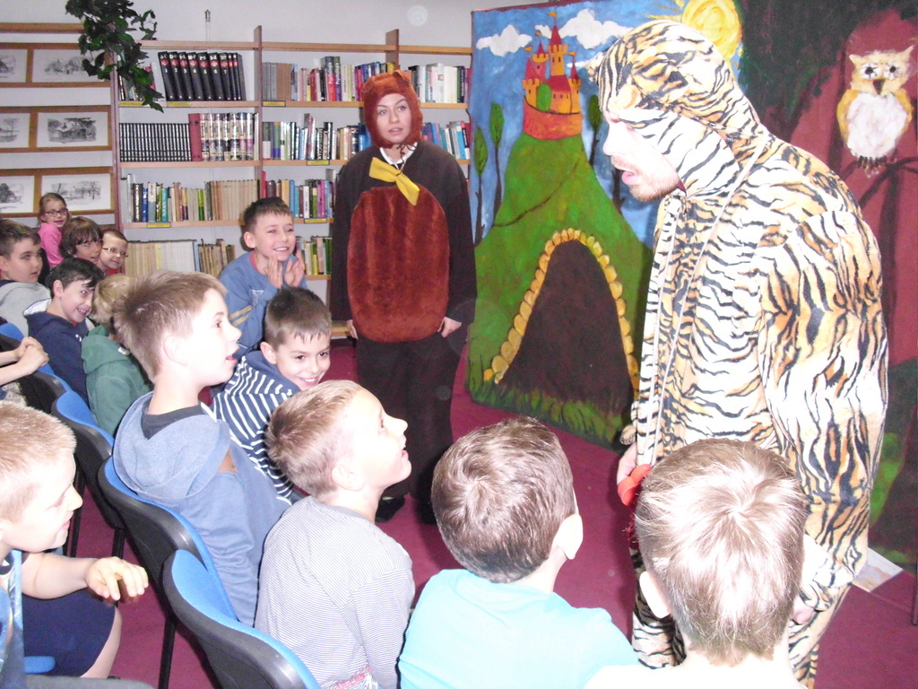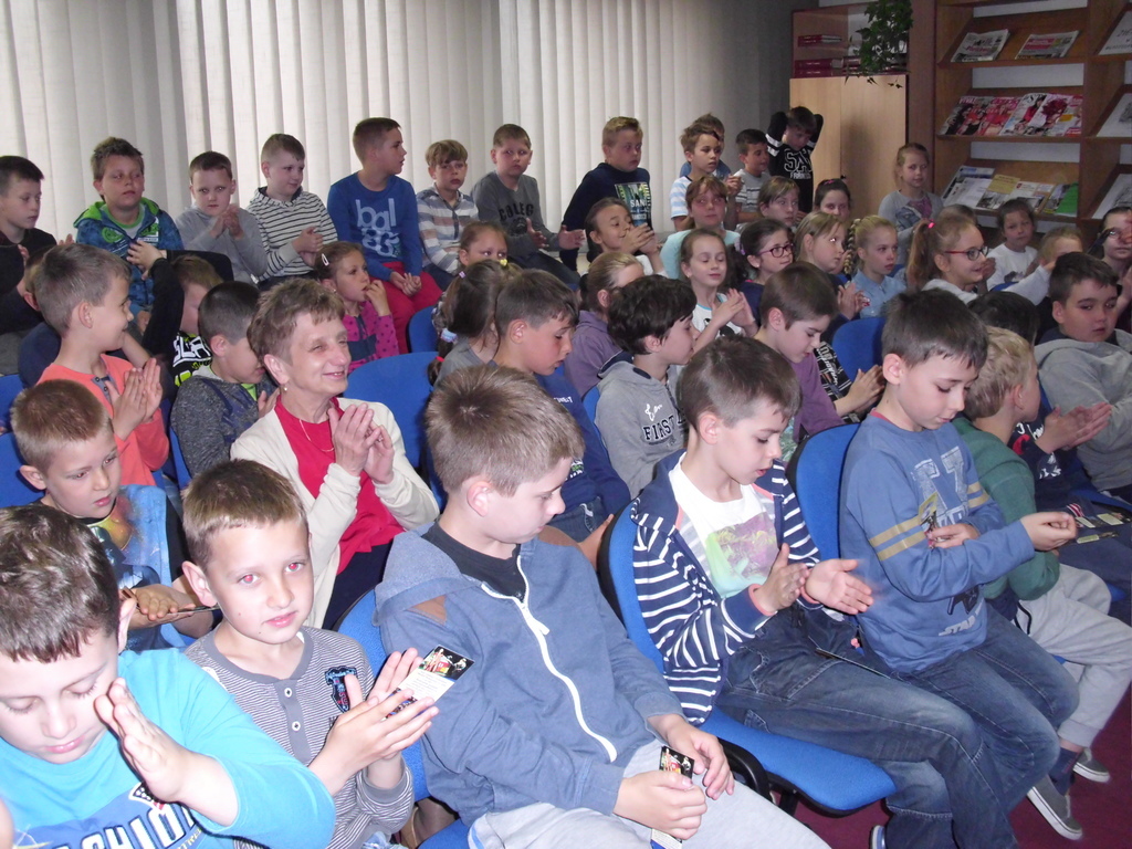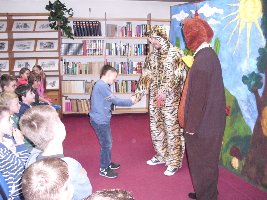 Dzieci świetnie się bawiły, nawiązały bardzo dobry kontakt i dialog z aktorami, którzy obdarowali wszystkich widzów zakładkami do książek z logo Teatru „Maska”. Uczniowie nie mieli ochoty opuścić biblioteki, ponieważ chętnie obejrzeliby kolejny spektakl.