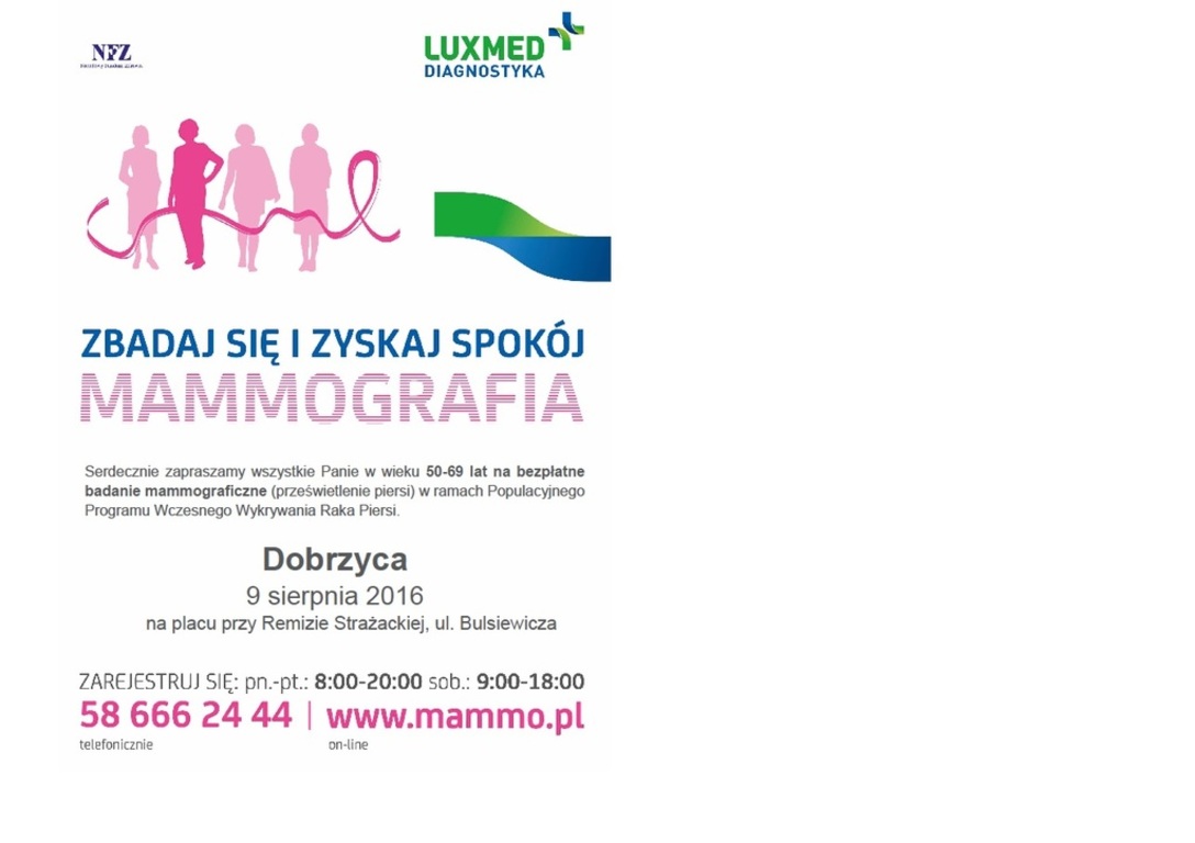 BEZPŁATNE BADANIA MAMMOGRAFICZNE - 9 SIERPNIA 2016 R.