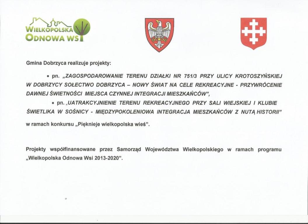 Informacja o projektach realizowanych przez Gminę Dobrzyca współfinansowanych przez Samorząd Województwa Wielkopolskiego.