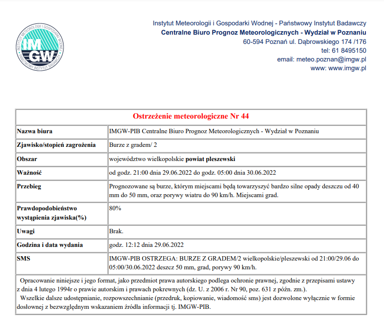 Ostrzeżenie meteorologiczne Nr 44 - Burze z gradem/ 2