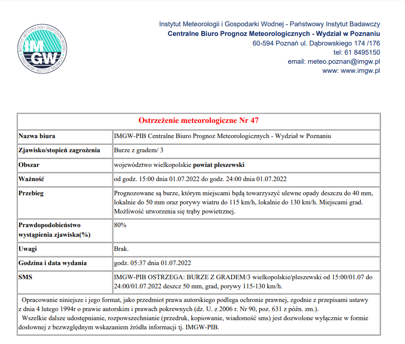 Ostrzeżenie meteorologiczne Nr 47 - Burze z gradem/ 3