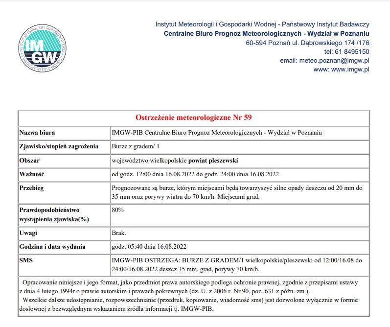 Ostrzeżenie meteorologiczne Nr 59 - Burze z gradem/ 1