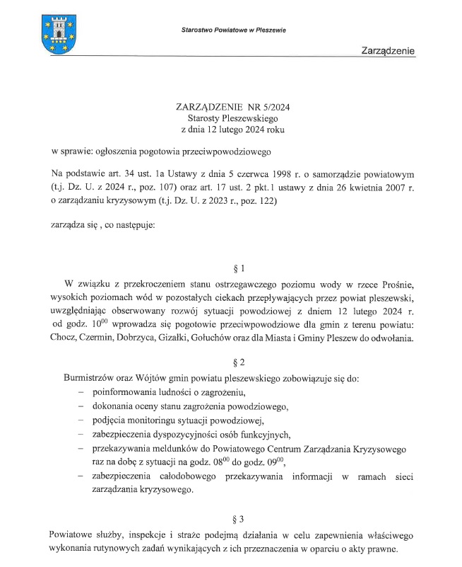 Wprowadzenie Pogotowia Przeciwpowodziowego Opublikowano: 12 lutego 2024 12:22 Kategoria: Komunikaty i ostrzeżenia WydrukujDo góry Zdjęcia: Wyświetleń: 320 Zobacz również17.05.2024 Ostrzeżenie meteorologiczne Nr 33 - Silny wiatr/... 05.05.2024 Ostrzeżenie meteorologiczne Nr 30 - Burze z... 21.02.2024 Obszar zagrożony Ptasią Grypą na terenie gminy... 12.02.2024 Wprowadzenie Pogotowia Przeciwpowodziowego 23.01.2024 Ostrzeżenie meteorologiczne Nr 11 - Silny wiatr/... 17.01.2024 Ostrzeżenie meteorologiczne Nr 9 - Opady...