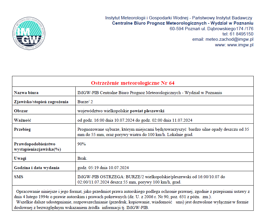 Ostrzeżenie meteorologiczne Nr 64 - Burze/ 2 - 10.07.2024 Opublikowano: 10 lipca 2024 09:30 Kategoria: Komunikaty i ostrzeżenia WydrukujDo góry Wyświetleń: 258 Zobacz również22.07.2024 Ostrzeżenie meteorologiczne Nr 72 - Burze/ 2 -... 16.07.2024 Ostrzeżenie meteorologiczne Nr 70 - Burze/ 2 -... 12.07.2024 Ostrzeżenie meteorologiczne Nr 66 - Upał/ 1 oraz... 10.07.2024 Ostrzeżenie meteorologiczne Nr 64 - Burze/ 2 -... 09.07.2024 Ostrzeżenie meteorologiczne Nr 63 - Upał/ 2 -... 05.07.2024 Ostrzeżenie meteorologiczne Nr 61 - Upał/ 1 -...