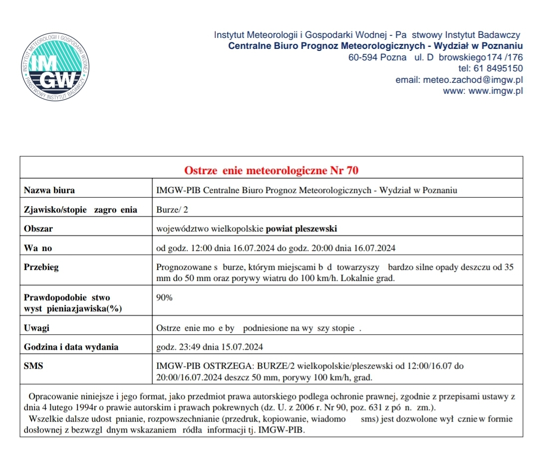 Ostrzeżenie meteorologiczne Nr 70 - Burze/ 2 - 16.07.2024 Opublikowano: 16 lipca 2024 10:32 Kategoria: Komunikaty i ostrzeżenia WydrukujDo góry Wyświetleń: 316 Zobacz również11.09.2024 Ostrzeżenie meteorologiczne Nr 87 - Intensywne... 08.08.2024 Ostrzeżenie meteorologiczne Nr 77 - Burze/ 1 -... 22.07.2024 Ostrzeżenie meteorologiczne Nr 72 - Burze/ 2 -... 16.07.2024 Ostrzeżenie meteorologiczne Nr 70 - Burze/ 2 -... 12.07.2024 Ostrzeżenie meteorologiczne Nr 66 - Upał/ 1 oraz... 10.07.2024 Ostrzeżenie meteorologiczne Nr 64 - Burze/ 2 -...