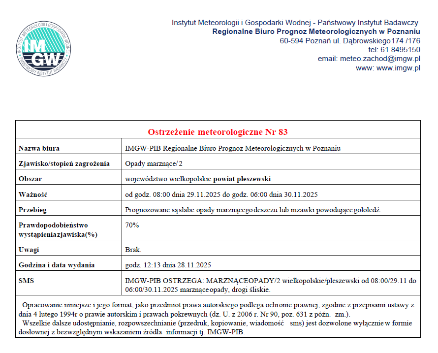 Ostrzeżenie meteorologiczne Nr 83 - Opady marznące / st. 2